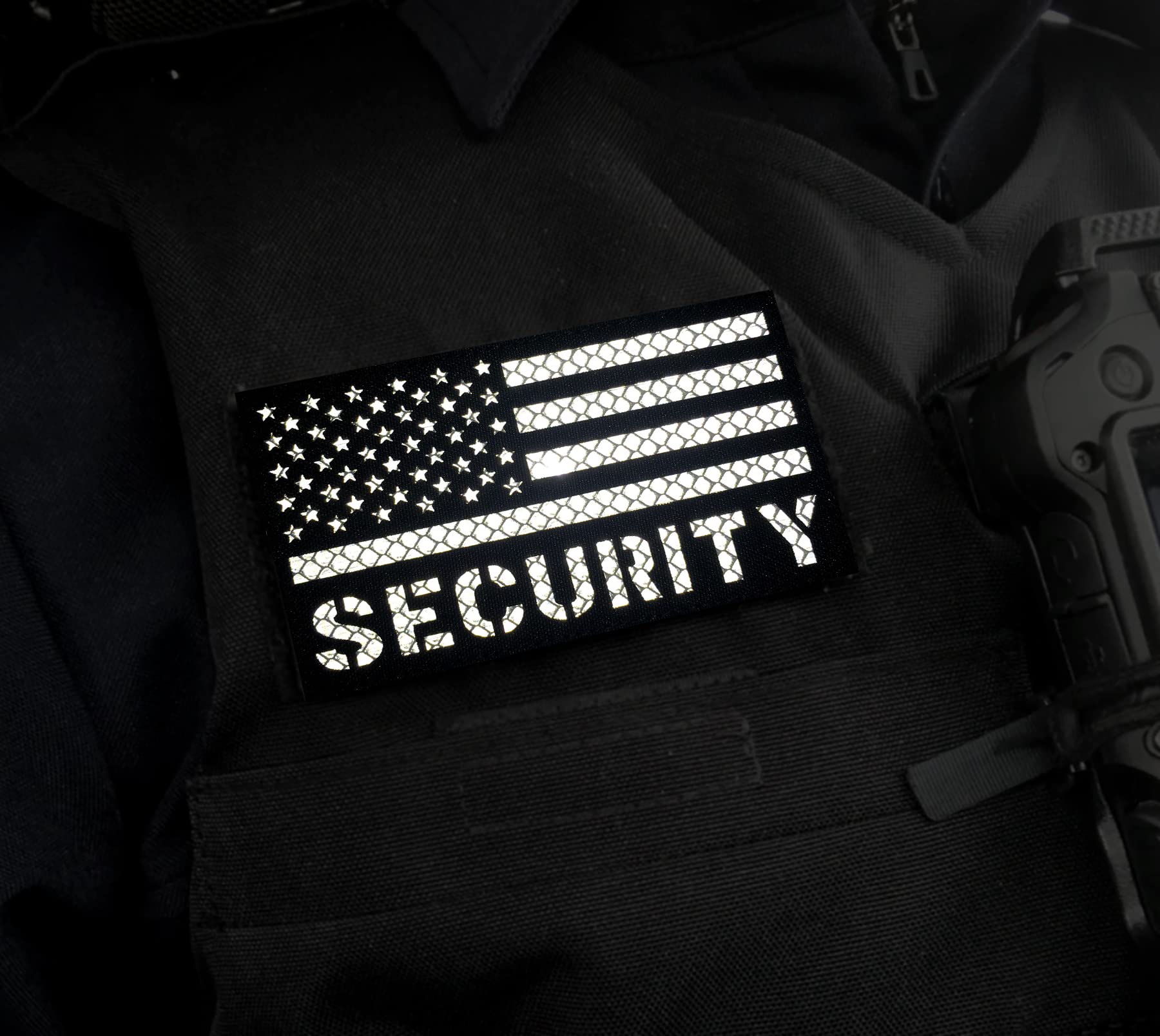 Details: 2 Pack Reflective Security Patch US Flag with Hook Back for Service Harness Tactical Vest Collar Hook-Fastener Backing