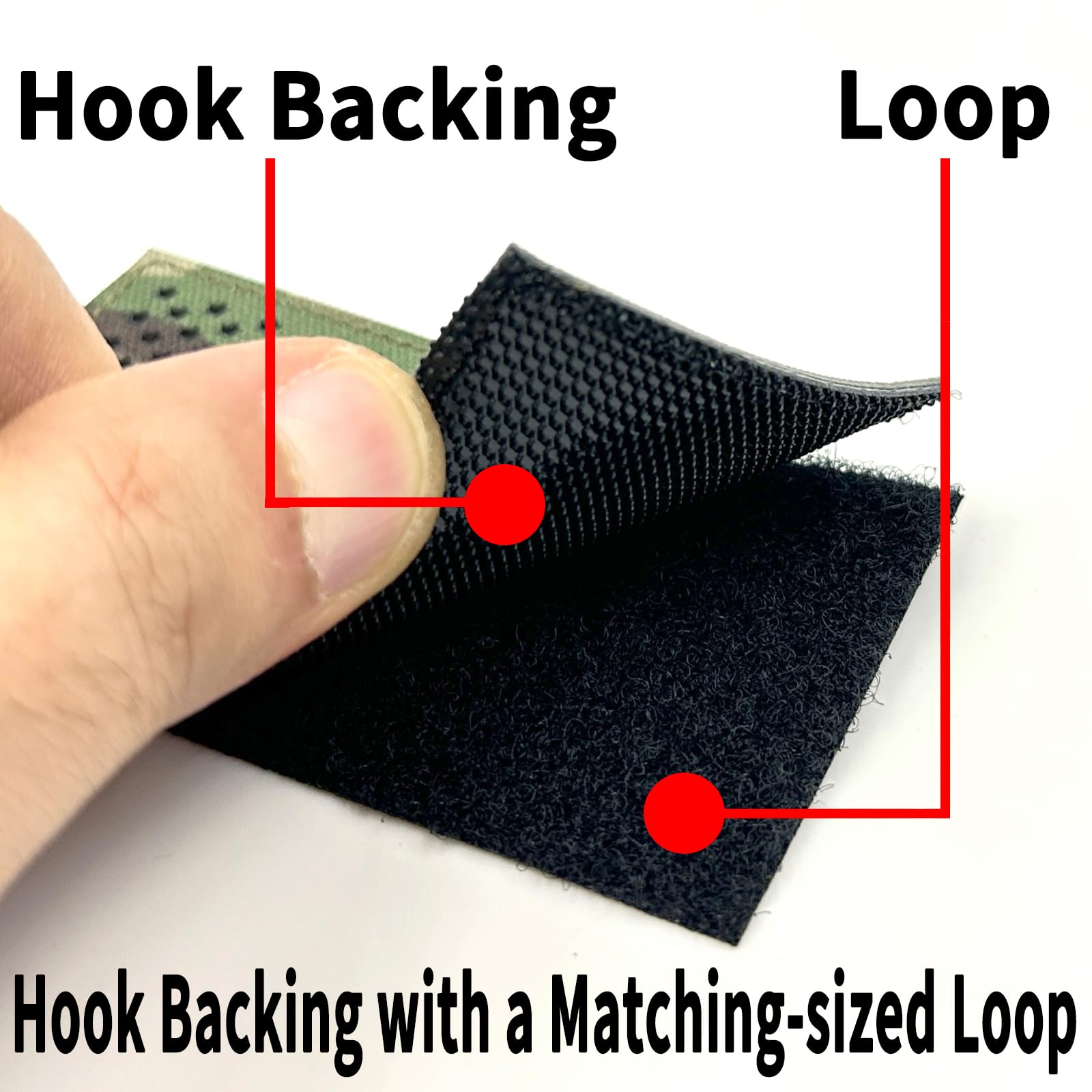 - Hook fastener backing with a matching-sized loop.