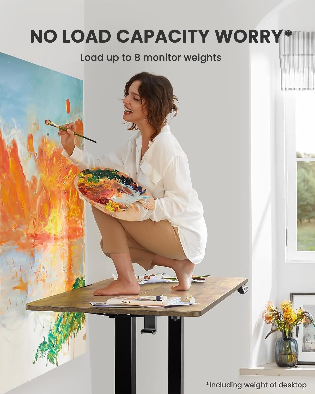 - Outstanding Stability: This electric standing desk has a sturdy solid steel frame with aerospace-grade lifting column connectors (still stable & secure after testing 100,000 times). It's a firm foundation for work, even at full height