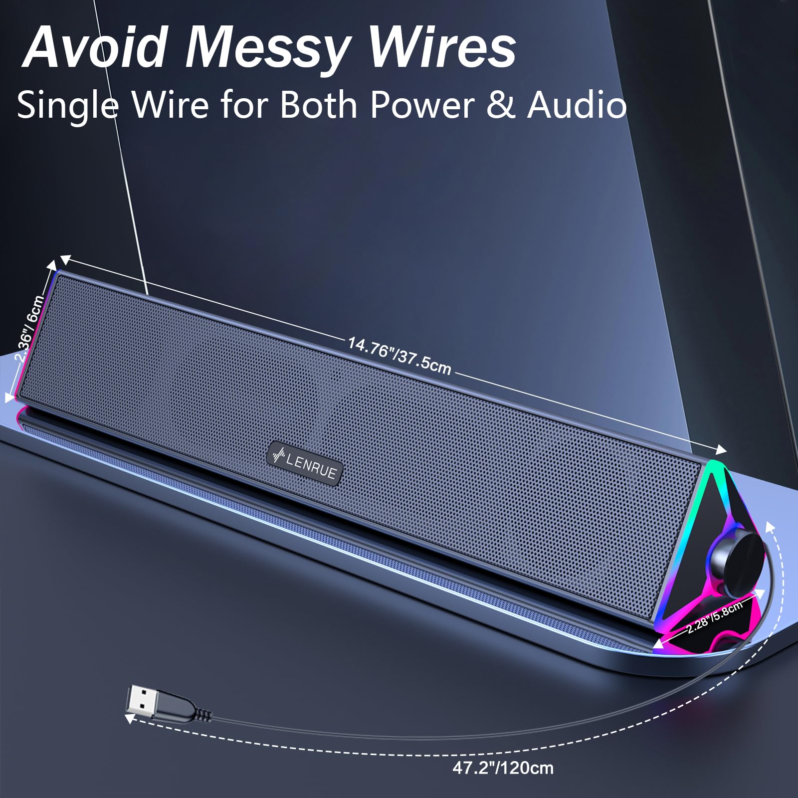 LENRUE Computer Speakers for Desktop,PC Speakers with Single USB for Power and Stereo Sound,Touch Lights Gaming Speakers Sound bar for Desktop PC Monitor Laptop(USB-C Adapter Included)