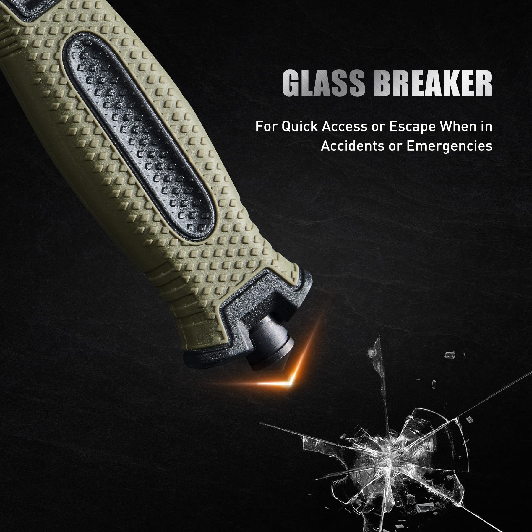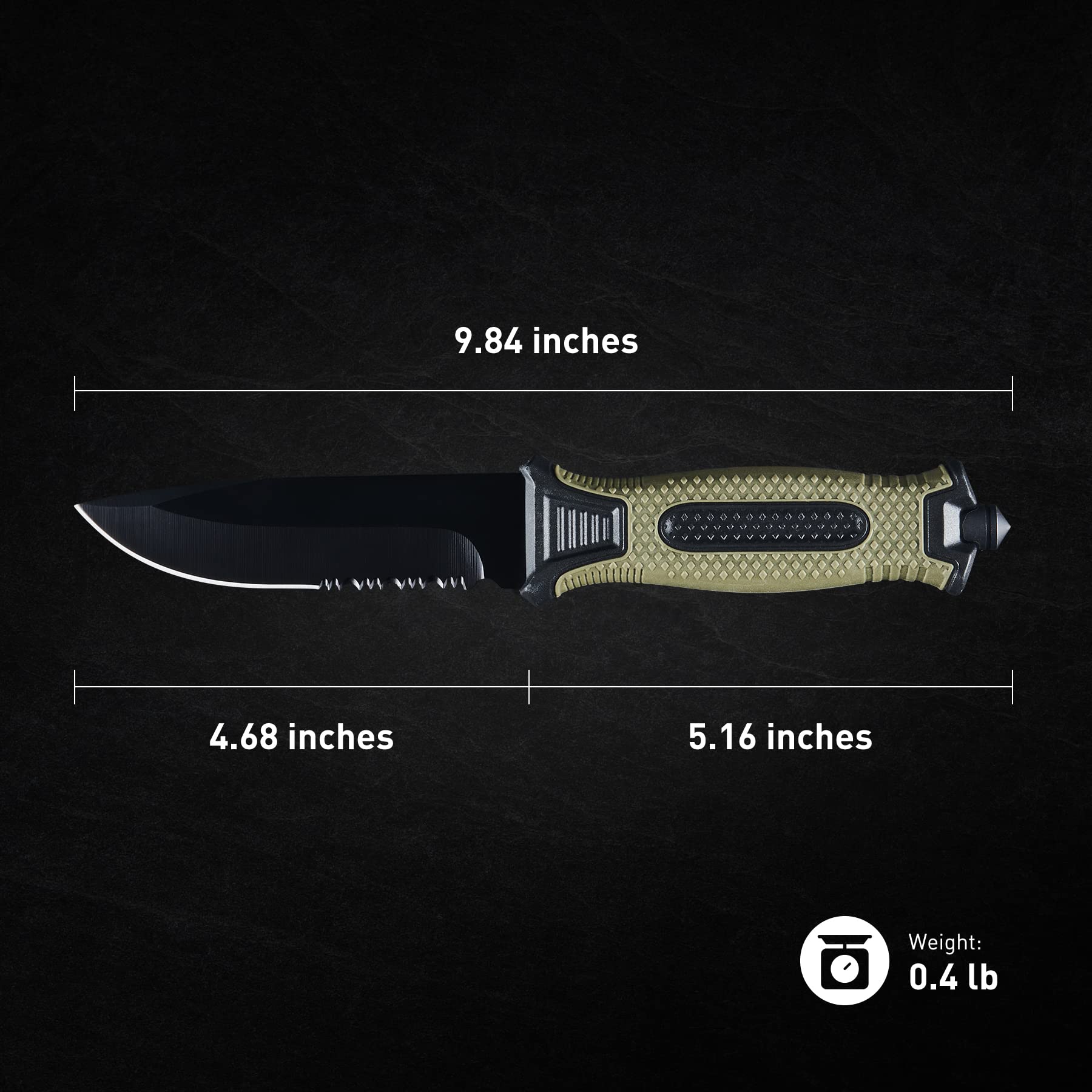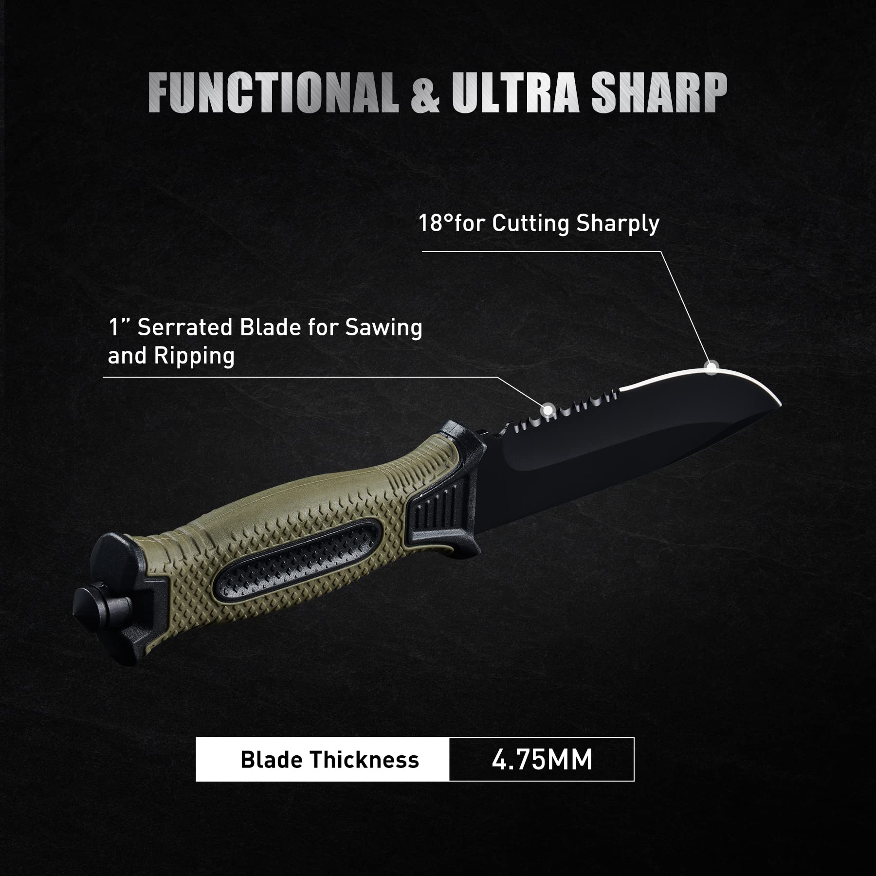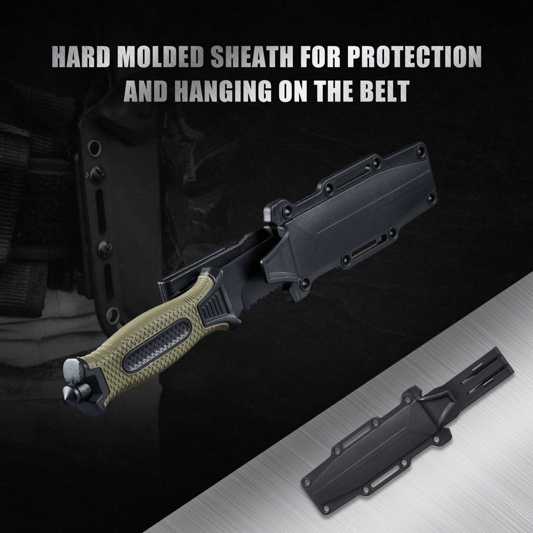 Leopcito 10" Fixed Blade Tactical Knives with Sheath and Clip, Stainless Steel Survival Hunting Bushcraft Full Tang Non-Slip Handle Knife for Camping, Hunting, Adventure, Outdoors, EDC,Military Green
