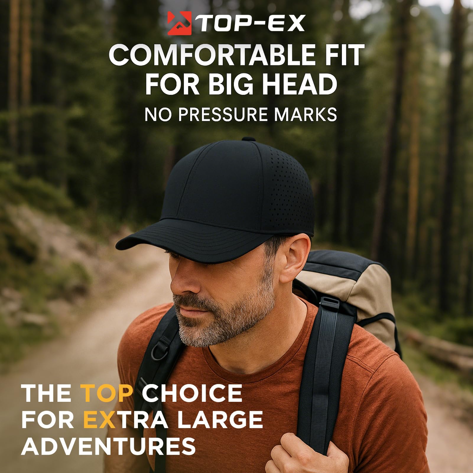 - 【Hydro Performance for All-Day Dryness】 Crafted with TOP-EX's advanced water-repellent treatment, this oversized snapback baseball cap actively sheds water/sweat while maintaining airflow through laser-cut vents and keep dry with cool touch moisture-wicking sweatband. Perfect as gym hats for big-headed athletes or golf/fishing caps.
