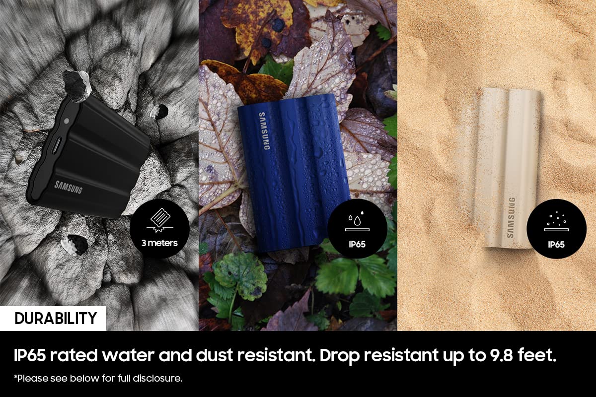 - GO THE DISTANCE: Withstand whatever adventure with the wildly reliable T7 Shield; It’s designed for the elements with water1, dust2 and drop3 resistance—all, of course, at lightning speeds