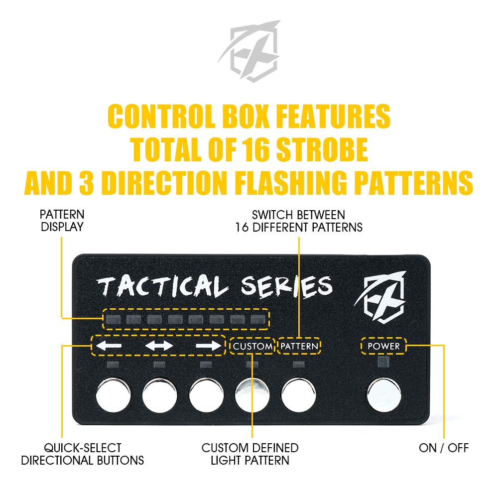 - 【QUICK MODE CONTROL SYSTEM】 Upgrade design, Easy to switch betweet 16 different strobe and quick-select buttons for 3 directional patterns, with last pattern memory recall.