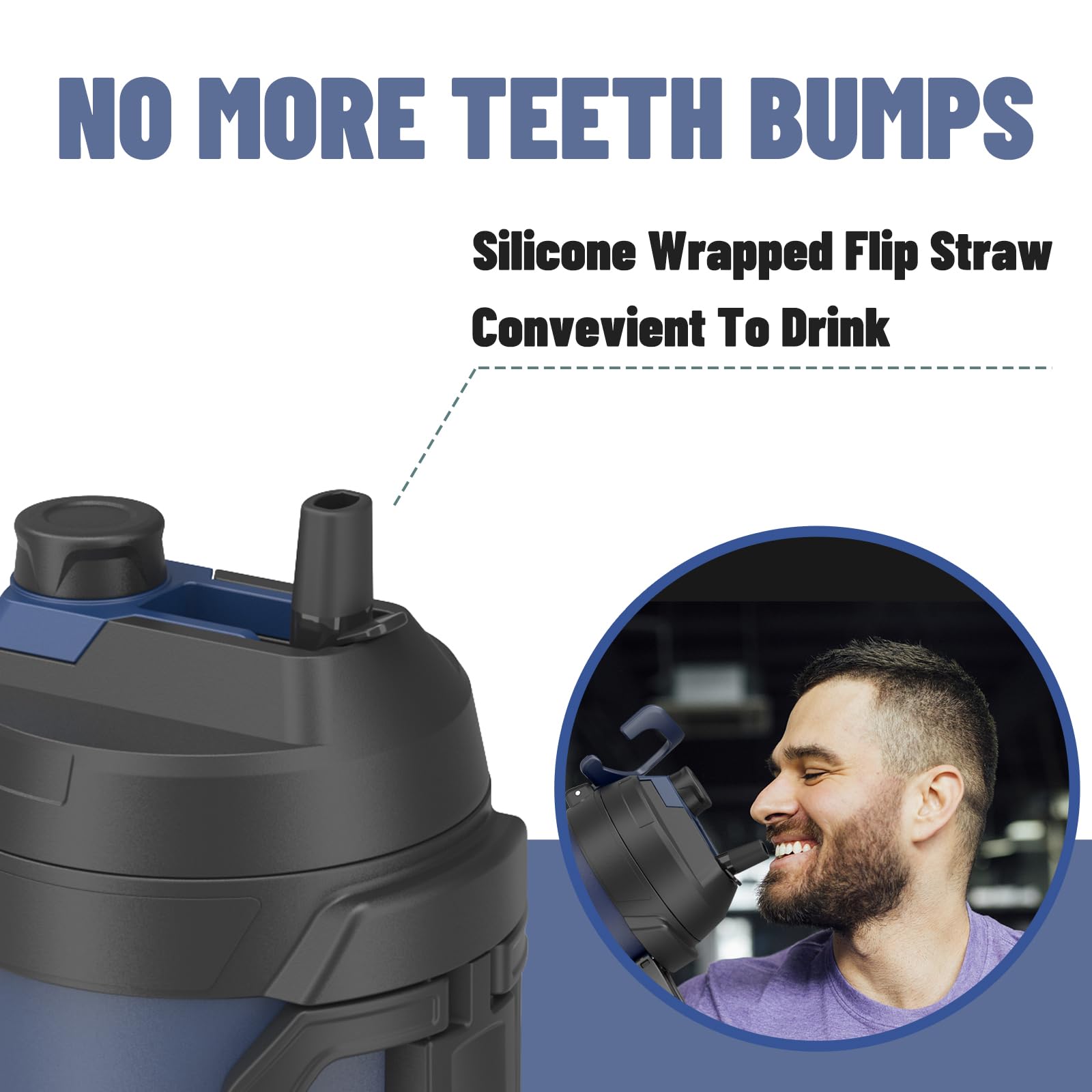 - VERSATILE AND FUNTIONAL - With its extra wide mouth opening, the thermos water jug is easy to clean and refill. The leakproof screw lid features a built-in straw nozzle and fast-flow spout for convenient drinking or pouring, and no more worries about spills or leakage. The metal canteen jug also comes with a protective bottom bumper for added durability.